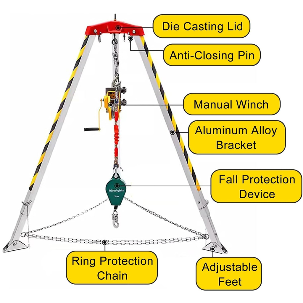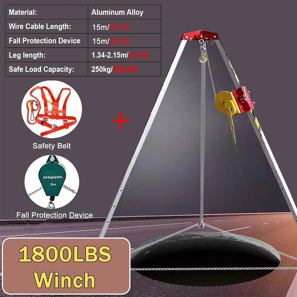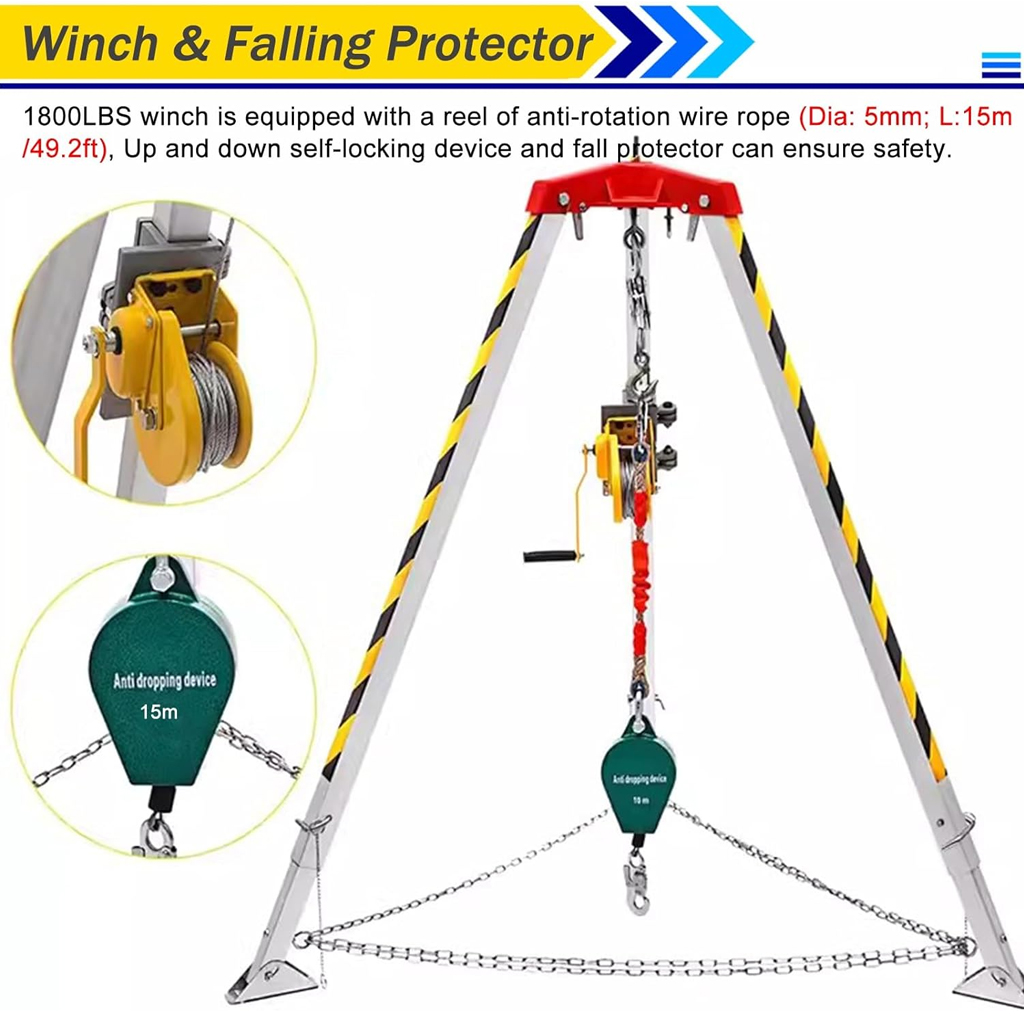 【 سعة تحميل قوية 】: تحميل آمن للرافعة 1800 رطل 250 كجم/550 رطل، يمكن للحامل ثلاثي المساحة الخاص بنا أن يوفر إنقاذًا علميًا وآمنًا لضمان سلامة المستخدمين.
